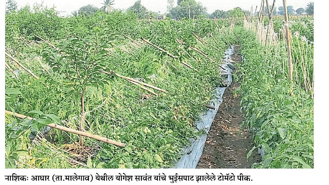 नाशिक जिल्ह्यात अनेक ठिकाणी टोमॅटो पीक जमीनदोस्त