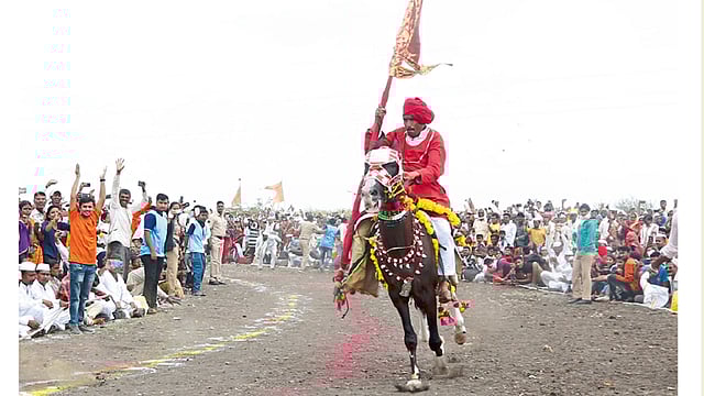 नातेपुते - माउली... माउली...च्या नामघोषांत श्री संतशिरोमणी ज्ञानेश्वर महाराज पालखी सोहळ्यातील पहिले गोल रिंगण आज पुरंदावडे, ता. माळशिरस येथे अपार उत्साहात पार पडले.