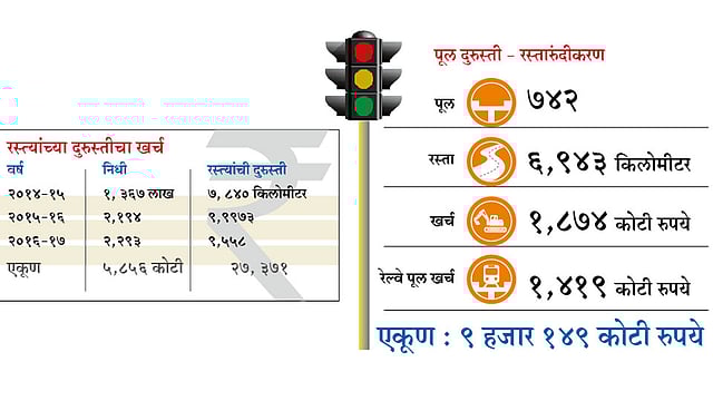 दुसरीकडे, जुन्या सरकारने मंजूर केलेल्या; मात्र ज्या रस्त्यांच्या कामांचा आदेश (वर्कऑर्डर) काढला नाही अशी कामेही तिजोरीतील खडखडाटाचे कारण देत रोखण्यात येणार आहेत. राज्यातील गावे-शहरांलगतच्या सुमारे ९७ हजार किलोमीटर लांबीच्या रस्त्यांची ‘पीडब्ल्यूडी’कडून नियमित देखभाल-दुरुस्ती होते. त्याकरिता वर्षाला साधारणपणे चार हजार कोटी रुपयांची तरतूद केली जाते. मात्र, पावसाळा आणि अवजड वाहनांमुळे रस्ते खराब झाल्याचे, विशेषत: त्यावर खड्डे पडल्याचे आढळून आले. खड्डे बुजविण्यापासून आवश्यक ती कामे केली गेली. तसेच, जुन्या आणि मोडकळीस आलेल्या पुलांसह नव्या पुलांची उभारणीही केली आहे. त्यासाठी ८ हजार १४९ कोटींचा खर्च दाखविला आहे. तरीही, या रस्त्यांची दुरवस्था होऊन त्यावर प्रचंड खड्डे पडल्याचे गाऱ्हाणे विधिमंडळात मांडण्यात आले होते. मूळ रस्त्यांच्या बांधणीत गुणवत्ता नसल्यानेच २०१४-२०१७ या कालावधीत केलेल्या रस्त्यांच्या कामांच्या ठेकेदारांना ‘धडा’ शिकविण्याचा निर्णय या सरकारने घेतला आहे.