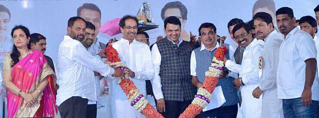 कुडाळ - नवे-जुने राजकीय वैरी एकाच व्यासपीठावर एकत्र येण्याचा आणि विकासात राजकारण दूर ठेवण्याच्या आणाभाका घेण्याचा दुर्मिळ अनुभव आज सिंधुदुर्गवासीयांनी घेतला. मुंबई-गोवा महामार्गाच्या चौपदरीकरणाच्या भूमिपूजनाच्या कार्यक्रमात मुख्यमंत्री देवेंद्र फडणवीस, शिवसेना पक्षप्रमुख उद्धव ठाकरे, माजी मुख्यमंत्री नारायण राणे, केंद्रीय दळण-वळणमंत्री नितीन गडकरी असे दिग्गज नेते एकाच व्यासपीठावर येण्याची किमया घडली. यावेळी केंद्रीय समाजकल्याण राज्यमंत्री रामदास आठवलेंनी "कोई माने या ना माने...एकत्र आले उद्धवजी, देवेंद्रजी, नितीनजी आणि नारायण राणे' अशा शब्दांत हा क्षण कविताबद्ध करून टाळ्याही मिळविल्या.