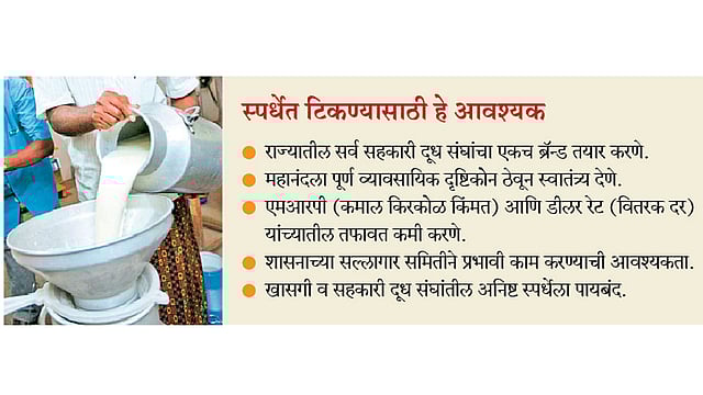 दुधाच्या क्षेत्रात स्पर्धेचे वातावरण निर्माण झाल्यास शेतकरी आणि ग्राहक या दोन्ही घटकांचा फायदा होणार आहे; परंतु विषम स्पर्धेमुळे सहकारी दूध चळवळ संपुष्टात आली, तर परराज्यांतील दूध संघांची मक्तेदारी निर्माण होण्याची शक्यता आहे. अशा मक्तेदारीमुळे दीर्घकालीन विचार करता शेतकऱ्यांची नाडवणूक होण्याचा धोका आहे; तसेच त्याचे ग्रामीण महाराष्ट्रावर गंभीर आर्थिक व सामाजिक परिणाम होतील. त्यामुळे राज्यातील दूध संघांनी या आव्हानाचा मुकाबला करण्यासाठी एकजूट दाखवावी आणि राज्य सरकारने त्यांना भक्कम पाठबळ द्यावे, अशी भावना या क्षेत्रातील घटकांनी व्यक्त केली.