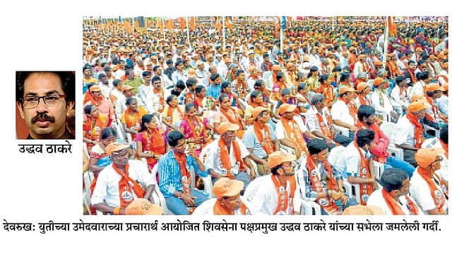 महायुतीचे रत्नागिरी-सिंधुदुर्गातील उमेदवार विनायक राऊत यांच्या प्रचारार्थ देवरुखातील स्वातंत्र्यवीर सावरकर चौकातील पटांगणावर आज उद्धव ठाकरे यांची सभा झाली, त्या वेळी ते बोलत होते. ठाकरे म्हणाले की, मागील वेळी विनायक राऊत निवडून आल्यावर कोकणवासीयांना धन्यवाद देण्यासाठी मी आलो होतो. या मतदारसंघाला बॅ. नाथ पै, प्रा. मधू दंडवते, सुरेश प्रभू यांसारख्या दिग्गज खासदारांची परंपरा आहे. २००९ ला ती खंडित झाली. मात्र, युतीच्या कार्यकर्त्यांनी ती कसर मागील वेळी भरून काढली. या वेळीही तीच परंपरा कायम ठेवायची आहे. आम्ही कोकणात विकासकामे केली आणि समोरचा विचारतोय काय विकास केलात? ज्याला ही विकासकामे दिसत नसतील, तोच निवडणुकीनंतर दिसेनासा होईल. या निवडणुकीत महाराष्ट्रात ३६-४० नव्हे; तर महाराष्ट्रातील ४८ मतदारसंघांतून महायुतीचे खासदार विजयी करण्याची आज शपथ घेऊया, असेही आवाहन ठाकरे यांनी या वेळी केले.