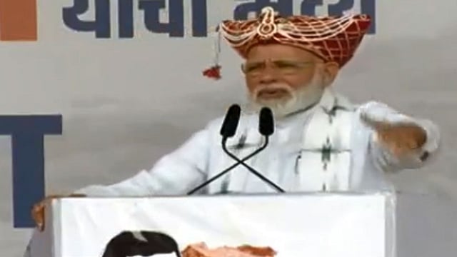 आज सभेच्या ठिकाणी मोदींचे आगमन होताच राष्ट्रवादी काँग्रेस सोडून भाजपमध्ये दाखल झालेले उदयनराजे भोसले पंतप्रधान नरेंद्र मोदींच्या सभेला उपस्थित राहिले. यावेळी उदयनराजेंनी मोदींच्या डोक्यावर मोत्यांनी सजवलेली शिवकालीन पगडी घातली. मोदी सभास्थळी दाखल होताच छत्रपती शिवाजी महाराज की जय, जय भवानी जय शिवाजी अशा घोषणा देण्यात आला. यावेळी शिवाजी महाराजांच्या पुतळ्याला पुष्पहार अर्पण करण्यात आला.