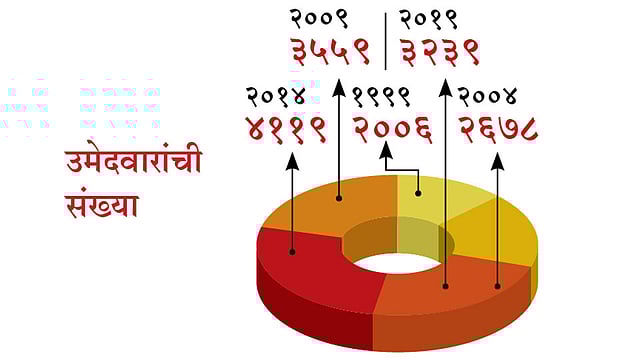 विधानसभा 2019 : मुंबई - गेल्या दोन विधानसभा निवडणुकांच्या तुलनेत यंदा निवडणूक लढविणाऱ्या उमदेवारांची संख्या घटली आहे. या वेळी निवडणुकीत ३ हजार २३९ उमेदवार आपले नशीब आजमावत आहेत. २०१४ मध्ये ४ हजार ११९ उमेदवारांनी निवडणूक लढवली होती.