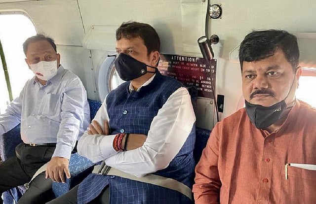 मुंबई - गेल्या चार दिवसात राज्यात पावसाने धुमाकूळ घातला आहे. यामुळे कोकणातील अनेक भागात दरड कोसळण्याच्या घटना घडल्या आहेत. चिपळूण, महाड, खेड तालुक्यात महापूर आला असून जनजीवन विस्कळीत झालं आहे. याची पूरग्रस्त भागाची पाहणी करण्यासाठी विरोधी पक्षनेते देवेंद्र फडणवीस कोकण दौऱ्यावर आहेत. त्यांच्यासोबत केंद्रीय मंत्री नारायण राणे आणि प्रविण दरेकर हेसुद्धा आहेत. त्यांनी हेलिकॉप्टरमधून पूरग्रस्त भागाची पाहणी करण्यासाठी रवाना झाल्याची माहिती फडणवीस यांनी ट्विटरवरून दिली आहे.