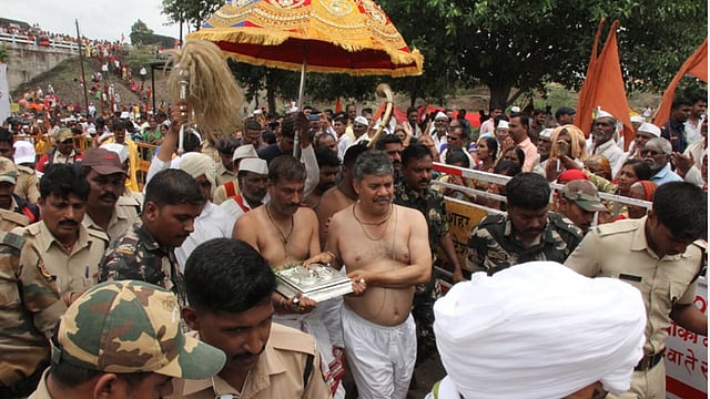सोमेश्वरनगर - टाळ-मृदंगांच्या आणि विठ्ठलनामाच्या टिपेला पोचलेल्या गजरात नीरा (ता. पुरंदर) येथे संत ज्ञानेश्वर महाराजांच्या पादुकांचा मानाचा नीरास्नान सोहळा मंगळवारी पार पडला. यानंतर पुणे जिल्ह्याचा निरोप घेत पालखी सोहळा सातारा जिल्ह्यात प्रवेश करता झाला. तत्पूर्वी, पिंपरे खुर्द ग्रामस्थांची न्याहारी आणि नीरेकरांच्या दुपार भोजनाचा वारकऱ्यांनी आस्वाद घेतला.