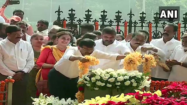 शिवसेनाप्रमुख बाळासाहेब ठाकरे यांचा आज (रविवारी) स्मृतिदिन असून, शिवाजी पार्क येथील कार्यक्रमात संजय राऊत त्यांना अभिवादन करण्यासाठी आले होते. राज्यात शिवसेना, काँग्रेस आणि राष्ट्रवादी काँग्रेस लवकरच सरकार स्थापन करणार आहे. अशात आज शिवसेनेव्यतिरिक्त राष्ट्रवादी आणि काँग्रेसचे अनेक मोठे नेते हे शिवाजी पार्कवर बाळासाहेब ठाकरे यांच्या स्मृतीस नमन करण्यास येण्याची शक्यता आहे. बाळासाहेबांना मानवंदना देण्यासाठी महाराष्ट्रासह देशभरातून लाखो शिवसैनिकांची गर्दी शिवतीर्थावर उसळली आहे.