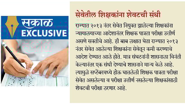 राज्यात प्राथमिक शिक्षक म्हणून सेवेत समाविष्ट होण्यासाठी शिक्षक पात्रता परीक्षा उत्तीर्ण असणे अनिवार्य आहे. राज्य शासनातर्फे अनेक वर्षांनंतर शिक्षक भरती सुरू करण्याची भूमिका घेण्यात आली आहे. तर राज्य शासनातर्फे अनेक जिल्हा परिषदांनी मध्यंतरीच्या काळात शिक्षक भरतीस स्थगिती असतानाही शिक्षक मान्यता दिल्याची बाब समोर आली आहे. शिक्षक पात्रता परीक्षा उत्तीर्ण नसलेल्या व नियुक्ती दिलेल्या शिक्षकांचे वेतन बंद करून त्यांना सेवेतून कमी करण्याबाबतचे आदेश यापूर्वी प्रशासनाने दिले होते. दरम्यान, राज्य शासनाने अशा नियुक्त झालेल्या शिक्षकांना अजून एक संधी उपलब्ध करून देण्याच्या दृष्टीने यापूर्वी आदेश दिले आहेत.