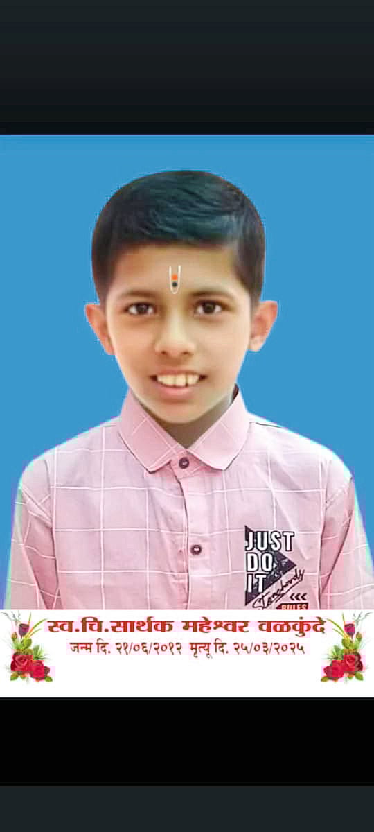 सोलापूर : चार वर्षीय सार्थक वळकुंदे याने बालवाडीत असताना प्रजासत्ताक दिनाला तीन पानाचे भाषण जसेच्या तसे गावकऱ्यांसमोर म्हणून सर्वांचेच लक्ष वेधले होते. त्यावेळी गावकऱ्यांकडून त्याला १४०० रुपयांचे बक्षीस मिळाले. अभ्यासात हुशार सार्थक सहावीपर्यंत फोंडशिरसच्या शाळेत शिकला. त्याच्याकडून खूप अपेक्षा असल्याने आई-वडिलांनी नातेपुते येथील संत बाळूमामा संचलित ज्ञानज्योती इंग्लिश मीडियममध्ये प्रवेश घेतला होता. चालू वर्षातील अंतिम सत्रातील शेवटचे दोन पेपर राहिले असतानाच त्याचा अपघाती मृत्यू झाला आणि संपूर्ण मारकडवाडीवरच शोककळा पसरली.