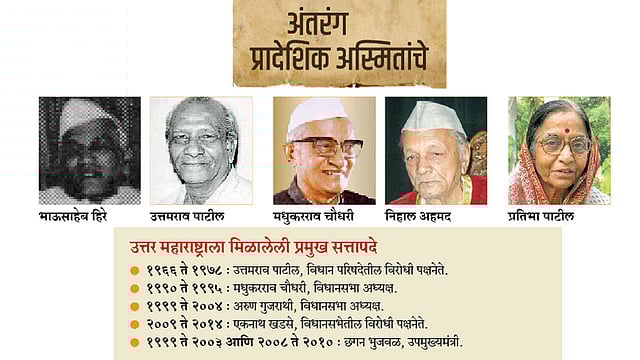 प्रादेशिक अस्मिता टोकदार करत कधीही उत्तर महाराष्ट्रातील नेत्यांनी सवता सुभा मांडण्याचा प्रयत्न केला नाही. तथापि, राज्याच्या राजकारणात त्यांनी सातत्याने महत्त्वाची भूमिका पार पाडली आहे. मात्र, मुख्यमंत्रिपद कधीही या भागाच्या वाट्याला आले नाही. हातातोंडाशी आलेला या पदाचा घास सातत्याने हुलकावणीच देत राहिला आहे.
