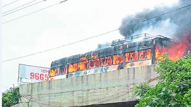 - 12.20 - त्याच जमावाने वागे वस्तीजवळील कोहिनूर सेंटर समोरील चार बस पेटविल्या.