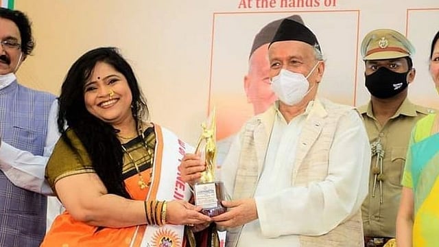 'महाराष्ट्राची हास्यजत्रा' या कार्यक्रमातून प्रेक्षकांना खळखळून हसवणारी अभिनेत्री विशाखा सुभेदारला Vishakha Subhedar राज्यपाल भगतसिंह कोश्यारी यांच्या हस्ते 'स्त्री शक्ती राष्ट्रीय पुरस्कार' Stree Shakti National Award प्रदान करण्यात आला आहे. यावेळी विशाखासह इतर ११ गुणवंत महिलांना हा पुरस्कार देऊन त्यांचा सन्मान करण्यात आला. यामध्ये बॉलिवूड अभिनेत्री उर्वशी रौतेला, गायिका पलक मुच्छल, निशिगंधा वाड, कविता राऊत यांचाही समावेश आहे. विशाखाने सोशल मीडियावर फोटो पोस्ट करत पुरस्काराचा आनंद व्यक्त केला. (Actress Vishakha Subhedar receives Stree Shakti National Award from the Governor of Maharashtra)