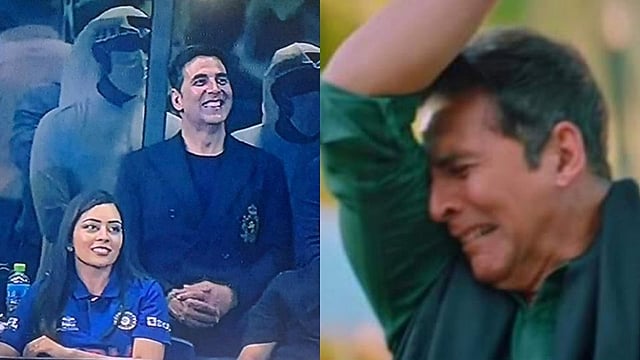 पकिस्तान संघाने टीम इंडियाला एकहाती पराभूत केलं. स्टेडियममध्ये अक्षय कुमार उपस्थित होता, म्हणूनच भारतीय संघाला विजय मिळवता आला नाही, अशी टीका नेटकऱ्यांकडून होऊ लागली. अक्षय कुमारवरील हे मीम्स सोशल मीडियावर व्हायरल होत आहेत. एका यूजरने लिहिले, 'जेव्हा भारत हरत होता ,तेव्हा हा माणूस हसत होता.' तर एकाने अक्षयचा फोटो एडिट करत त्यावर लिहिलं, 'मी पहिल्यांदा स्टेडियममध्ये मॅच बघायला आलो आणि भारतीय संघ पराभूत झाला.' अक्षय कुमार रील लाइफ पनौतीपासून रिअल लाईफपर्यंत, असेही मीम्स व्हायरल होत आहेत.
