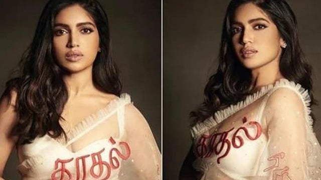 भूमी पेडणेकर(Bhumi Pednekar) सध्या तिच्या आगामी 'बधाई दो'(Badhai Do) सिनेमाच्या प्रमोशनमध्ये व्यस्त आहे. या प्रमोशनच्या निमित्तानं नुकतीच तिनं एक खास साडी फॅशन डिझायनर संदिप खोसलाकडून डिझाईन करून घेतली आहे. त्या साडीवर चक्क 'प्रेम' हे दोन शब्द वेगवेगळ्या भाषेत तिनं लिहून घेतले आहेत. सध्या तिच्या या हटके साडीची जोरदार चर्चा सुरू आहे. तिच्या या साडीवर सिनेमातील तिचा सहकलाकार राजकुमार राव याची बायको पत्रलेखा मात्र भलतीच खूश आहे. सोशल मीडियावर भूमीने साडीतले काही फोटो शेअर केले आहेत. ज्या फोटोवर कमेंटबॉक्स मध्ये पत्रलेखाने भूमीसाठी खूपसारे हार्ट इमोजी पोस्ट केले आहेत. पांढऱ्या रंगाच्या जाळीदार साडीवर छोटे छोटे डायमंड्स आहेत तर संपूर्ण साडीवर लाल रंगात प्रेम या दोन शब्दांना वेगेवेगळ्या भाषेत लिहिले गेले आहे. भूमीनं साडीवर स्लिव्हलेस ब्लाऊज घालणं पसंत केलं आहे.