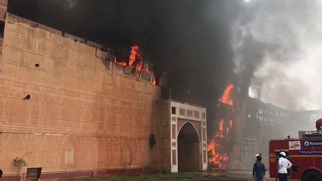 खालापूर तालुक्यातील चौक येथे असलेल्या एनडी स्टुडिओला ND Studio भीषण आग लागली. या आगीत 'जोधा अकबर' Jodha Akbar या सिनेमाच्या सेटसह शनिवार वाड्याचा सेटदेखील जळून खाक झाला आहे. कर्जत-पनवेल रेल्वे ट्रॅकच्या जवळच 'जोधा अकबर' चित्रपटाचा सेट उभा आहे. हा सेट लोकांना पाहण्यासाठी आणि आठवण म्हणून जतन करून ठेवण्यात आला आहे. या सेटला अचानकपणे आग लागल्याचे लक्षात आले. हा सेट फायबर आणि लाकूड यांचा असल्याने आगीने लगेचच रौद्र रूप धारण केले. (Fire breaks out at ND studio Karjat Jodhaa Akbar set up in flames)