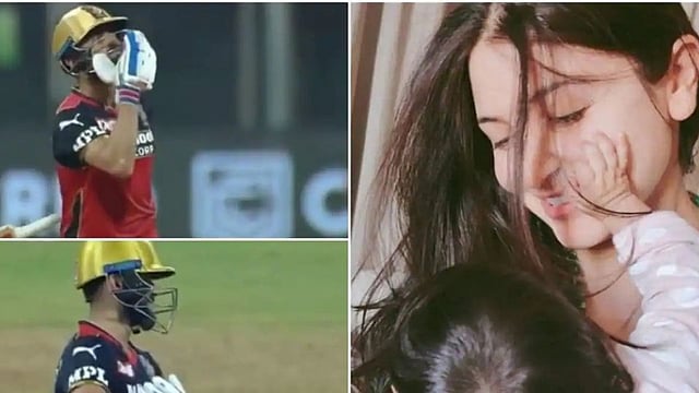 सामन्यादरम्यान अर्धशतक पुर्ण होताच विराटने प्रथम बॅट हवेत उंचवली. त्यानंतर अनुष्काला फ्लाइंग किस केले. हाताने बाळाला धरल्यासारखी पोज करून विराटने हे अर्धशतक त्याच्या मुलीला म्हणजेच वामिकाला समर्पित केले. विराटचा हा अंदाज त्याच्या चाहत्यांना खूपच आवडला आहे. व्हिडीओमध्ये विराटची टीम रॉयल चॅलेंजर्स बेंगळुरू त्याला चिअर अप करताना दिसत आहे. सामन्याती विराट, अनुष्का आणि वामिकाच्या या सुंदर क्षणाचा व्हिडीओ सोशल मीडियावर व्हायरल होत आहे. आयपीलने सोशल मीडियावरील अधिकृत अकाऊंटवर हा व्हिडीओ शेअर केला आहे. 6 लाखांपेक्षा अधिक नेटकऱ्यांनी हा व्हिडीओ सोशल मीडियावर पाहिला आहे.
