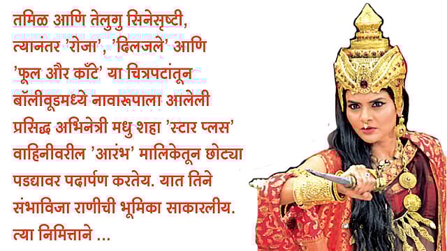 तमिळ आणि तेलुगु सिनेसृष्टी, त्यानंतर ‘रोजा’, ‘दिलजले’ आणि ‘फूल और काँटे’ या चित्रपटांतून बॉलीवूडमध्ये नावारूपाला आलेली प्रसिद्ध अभिनेत्री मधु शहा ‘स्टार प्लस’ वाहिनीवरील ‘आरंभ’ मालिकेतून छोट्या पडद्यावर पदार्पण करतेय. यात तिने संभाविजा राणीची भूमिका साकारलीय. त्या निमित्ताने ...