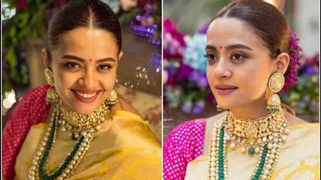 गार्डन परिसरात केलेली फुलं आणि लाईटींगच्या सजावटीत उभी असलेल्या सुरवीन चेहऱ्यावर आईपणाची आनंद झळकत होता. सुरवीन गर्भवती असल्यापासून ती अनेक कार्यक्रमांमध्ये ड्रेस व गाऊनमध्ये दिसली आहे. पण या 'बेबी शॉवर'मध्ये तिने 'रॉ मँगो'ची पिवळ्या रंगाची साडी नेसली होती. पुर्णपणे भारतीय वेशात ती आली होती. या वेगळ्या अंदाजात सुरवीनने 'बेबी शॉवर'चे फोटो फॅन्ससाठी शेअर केले आहेत.