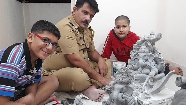 मुंबई - पोलिसाची ड्युटी काय असते हे काही वेगळं सांगण्याची गरज नाही. वेळेवर कामावर हजर झालं तरी ठरलेल्या वेळेत आपण घरी जाऊ याची काही शाश्वती नसते. दरम्यान कोरोनच्या काळात मोठी जबाबदारी पोलिसांच्या खांद्यावर होती. त्यांना वेगवेगळ्या संकटांचा सामनाही करावा लागला. अशावेळी आपले छंद, आवड यांच्यासाठी वेळ काढणं अवघड होऊन बसतं. गेल्या २४ वर्षांपासून आपण श्रींची मूर्ती बनविण्याचं काम करतो आहे. त्यासाठी कोणतंही प्रशिक्षण घेतलेलं नाही. रात्री कामावरून आलं की पहाटे तीन ते चार वाजेपर्यत मूर्ती तयार करण्याचं काम करत बसायंच. हा आजवरचा नियम आहे. तो गेल्या इतक्या वर्षात मोडलेला नाही. पुण्यातील रविवार पेठेतील पोलीस कर्मचारी गणेश तुर्के गणेशोत्सवाच्या आठवणी सांगताना हरखून जातात.