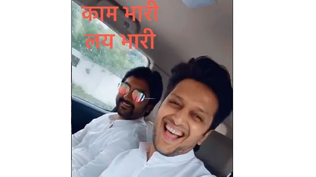 काल रितेशने त्याच्या इन्स्टाग्राम अकाऊंटवर एक टिकटॉक व्हिडिओ शेअर केला. या व्हिडिओमध्ये हे दोघं भाऊ मजा करत एका गाण्यावर मजा करताना दिसत आहेत. उमेदवारी अर्ज भरायला जाण्यापूर्वी केलेला हा व्हिडिओ असावा असा अंदाज आहे. यातून कळतं की कितीही गंभीर काम असलं तरी ते आनंदात आणि उत्साहात करायची रितेशची सवय आहे. या व्हिडिओत एका हटके गाण्यावर रितेश नाचताना दिसतोय आणि धीरजचा मूड आनंदी करण्याचा प्रयत्न करतोय. या व्हिडिओला रितेशने 'Brother Love' असं कॅप्शन दिलंय. तर व्हिडिओवर 'काम भारी, लय भारी' असं कॅप्शन दिलंय. या मजेशीर व्हिडिओचा रितेशचे फॅन चांगलाच आनंद लुटत आहेत. कालपासून हा व्हिडिओ खूप व्हायरल होतोय. या व्हिडिओला 698, 390 व्ह्यूज आहेत.