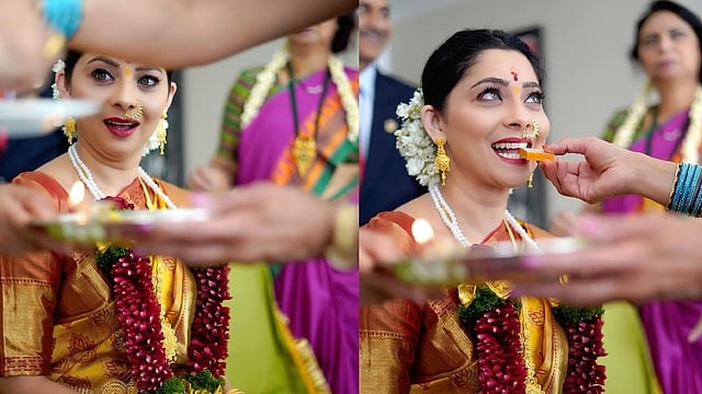 साखरपुड्याच्या पलीकडे आणि लग्नाच्या अलीकडे, असं मजेशीर कॅप्शन तिने या फोटोंना दिलं आहे. यातील पहिल्या दोन फोटोंमध्ये सोनाली मिठाईच्या ताटाकडे पाहताना दिसतेय तर तिसरा फोटो तिला मिठाई भरवताना टिपला आहे. या फोटोंमधील सोनालीच्या चेहऱ्याचे हावभाव पाहून नेटकऱ्यांसह अनेक सेलिब्रिटींनाही हसू आवरलं नाही. 'मी अशी नाहीये, फक्त हे क्षण असे टिपले गेलेत', अशी ओळ सोनालीने कॅप्शनमध्ये लिहिली आहे. हे वाचून अभिनेता अमेय वाघलाही कमेंट करण्याचा मोह आवरला नाही. 'खोटं नको बोलूस, तू अशीच आहेस', असं म्हणत त्याने सोनालीची गंमत केली.