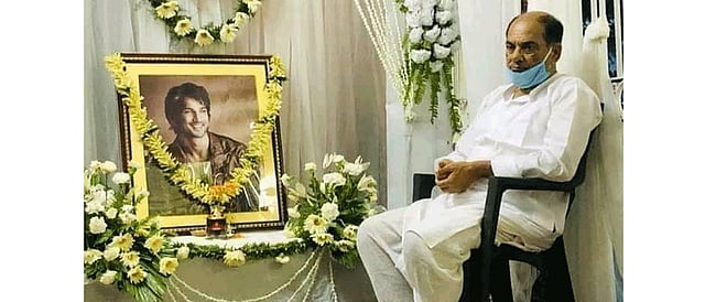 सुशांत सिंह राजपूतच्या नावाने चालवण्यात येणाऱ्या फॅन पेजच्या ट्विटर हँडलवर हा फोटो पोस्ट करण्यात आला आहे. या फोटोत सुशांतचे वडिल कृष्ण कुमार सिंह हे सुशांतच्या हार घातलेल्या फोटोसमोर बसलेले दिसत आहेत. मागच्या काही दिवसांपुर्वी सुशांतच्या पटना येथील घरात प्रार्थना सभेचे आयोजन करण्यात आळे होते, ज्यामध्ये कुटूंबीय, नातेवाईक तसेच काही जवळचे मित्र सहभागी झाले होते. त्या प्रसंगाचे फोटो सोशल मिडीयावर व्हायरल झाले आहेत.