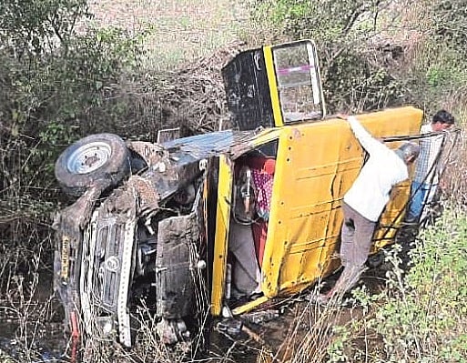 सिल्लोड-कन्नड रस्त्याचे काम सुरू असून, पर्यायी रस्त्याचीही दुरवस्था झाली आहे. त्यातच जुनाट आणि खिळखिळ्या झालेल्या खासगी प्रवासी वाहनांमधून जीव मुठीत धरूनच प्रवाशांना प्रवास करावा लागतो. शुक्रवारी सकाळी काळीपिवळी जीपमधून शिक्षक प्रवास करीत होते. सिल्लोड येथून घाटनांद्राकडे ही जीप (एमएच-20 - 149) भरधाव जात होती. जीपचे चाक निखळून पडल्यामुळे जीप दोन-तीनवेळा उलटून रस्त्याच्या खाली जाऊन पडली.