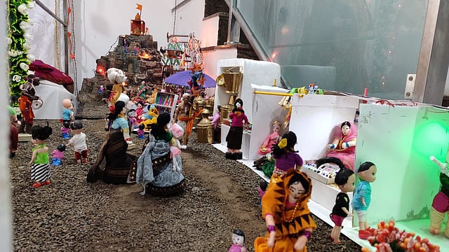 अत्यंत सुंदर आणि आकर्षक पद्धतीने मांडलेला हा देखावा सर्वांना गावाकडच्या जत्रेत घेऊन जातो. या देखाव्यात त्यांनी जत्रेतील प्रत्येक छोटी-मोठी वस्तू मांडण्याचा प्रयत्न केला आहे. यात त्यांनी बांगड्या, कपडे, खेळणी, पूजेचे साहित्य विक्री करणाऱ्या महिला, त्यांची खेळत असलेली लहान मुले, हॉटेल, खेळणीच्या दुकानांचे तंबू, फुगे विक्रेता, देवीचे गडावरील मंदिर, रहाटपाळणे, मिठाई विक्रेते अशा जवळपास एक हजारांपर्यंत वस्तूंचा वापर करून ही सजावट करण्यात आली आहे. शिवाय सत्तरपेक्षा जास्त बाहुल्यांचाही वापर करण्यात आला आहे.