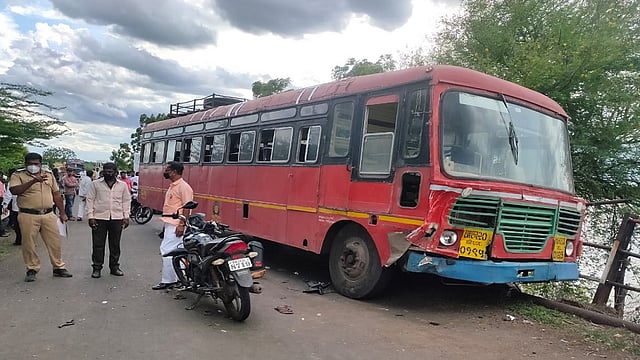 मिळालेल्या माहितीनुसार, उमरगा आगाराची नागूर - उमरगा बस उमरग्याकडे परतत होती. विकास गोरे (रा. आशिव ता.औसा), दौलत चव्हाण (रा. लोहटा, ता. औसा), दादासाहेब गडकर (रा. माकणी) हे दुचाकीने मागणीहून लोहाऱ्याला जात होते. माकणीपासून एक किलमीटरवरील निम्न तेरणा प्रकल्पाच्या पुलावर बस व दुचाकीची धडक झाली. त्यात दुचाकीवरील विकास गोरे, दौलत चव्हाण यांचा जागीच मृत्यू झाला.