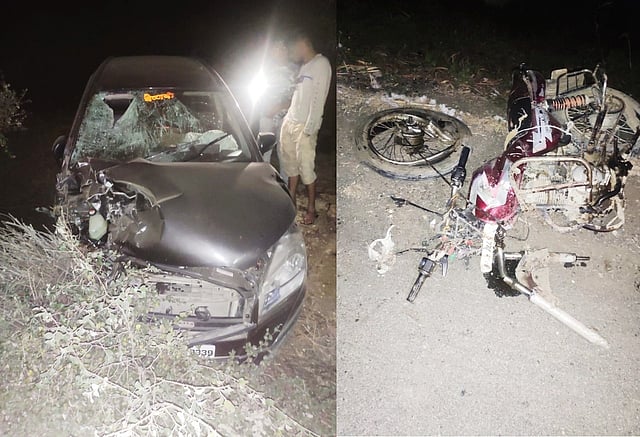 याबाबत अधिक माहिती अशी, की मारुती कार (क्रमांक एम.एच.२६-बी.सी.-३३३९) ही राष्ट्रीय महामार्ग २२२ वरून गढीहुन माजलगावच्या दिशेने भरधाव येत होती. याच वेळी दुचाकी (क्रमांक एम.एच.२३-एल.२९६१) वरून संतोष राऊत, गणेश देवकर हे दोन तरुण माजलगावाहून गेवराईकडे भरधाव वेगाने जात होते.