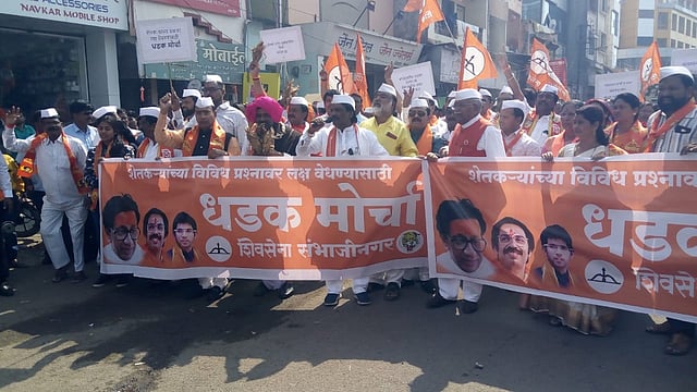 शेतकऱ्यांच्या विविध मागण्यांसाठी शिवसेनेच्यावतीने जिल्ह्यात सोमवारी (ता.25) एकाच वेळी प्रत्येक तहसील कार्यालयावर धडक मोर्चा काढण्यात आला. शहरामध्ये विभागीय आयुक्तालयावर हा मोर्चा काढण्यात आला. शिवसेनचे आमदार या मोर्चांचे त्या त्या ठिकाणी नेतृतव करणार होते, मात्र सध्या राज्यातील सत्तास्थापनेच्या खेळात सर्व आमदार एकत्रच असल्याने आमदारांशिवाय हे मोर्चे निघाले. सकाळी साडे अकरा बारा वाजेच्या सुमारास औरंगपुरा येथील महात्मा फुले चौकातुन मोर्चाला सुरुवात झाली.