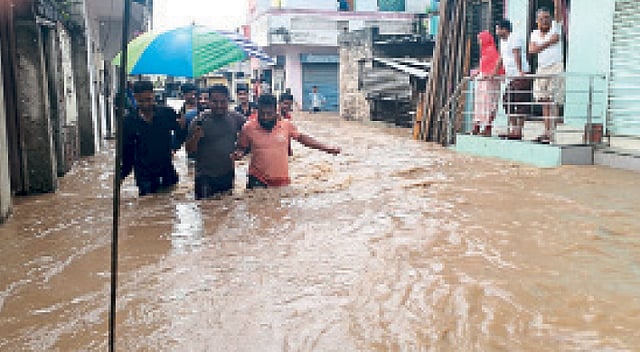 औरंगाबाद : शहर परिसरात पावसाचे धुमशान सुरूच आहे. शनिवारी (ता. दोन) पहाटे नागरिक साखरझोपेत असताना मुसळधार पावसाने पुन्हा शहराला झोडपून काढले. अवघ्या २५ मिनिटात ५१.२ मिलिमिटर एवढा धुवाधार पाऊस झाला. ढगफुटीसदृश झालेल्या या पावसामुळे हाहाकार उडाला. खाम, सुखना नदीला मोठा पूर आल्याने नारेगाव, ब्रिजवाडी, चिकलठाणा, चौधरी कॉलनी, नूर कॉलनी या भागाला पाण्याचा वेढा पडला. सुमारे तीनशे ते चारशे घरांत पुराचे पाणी घुसल्याने नागरिकांची एकच तारांबळ उडाली. अग्निशमन दलाने तातडीने घटनास्थळी धाव घेत पुरात अडकलेल्या नागरिकांना मदत केली. सकाळी ९.३० नंतर पुराचे पाणी ओसरले. या पुरामुळे नारेगाव, चिकलठाणा भागातील चार ते पाच पूल, रस्त्यांचे मोठे नुकसान झाले आहे.