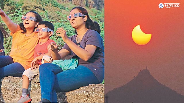 औरंगबाद : दिवाळी उत्सवादरम्यान मंगळवारी (ता.२५) सायंकाळी सूर्यास्तावेळी खंडग्रास सूर्यग्रहण पाहण्यासाठी बीबी का मकबरामागील गणेश टेकडीवर खगोलप्रेमींनी आकाशातील उत्सवाचा अनुभव घेतला. तब्बल ७० वर्षांनंतर सूर्यास्तावेळी ग्रहणाचा योग जुळून आल्याचे एमजीएम एपीजे अब्दुल कलाम खगोलअंतराळ विज्ञान केंद्राचे संचालक श्रीनिवास औंधकर यांनी सांगितले.