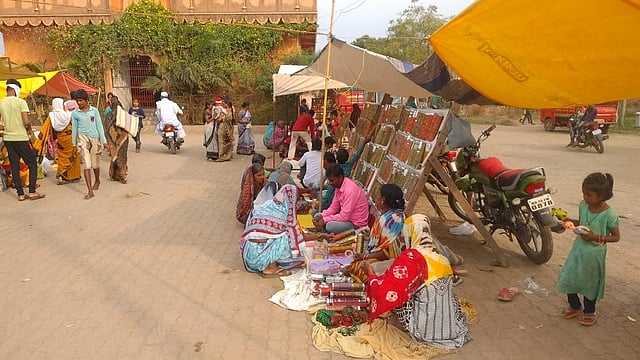 लोहगाव (औरंगाबाद): ग्रामपंचायत निवडणूक प्रचाराच्या धामधुमीत दोन दिवसांवर येवून ठेपलेल्या मकरसंक्रांत सणाचे साहित्य वस्रालंकार, सुगडे, बोर, बिबाफुले, तीळ, गुळ, वाण साहित्य, सोने अंलकार, दागीने, खरेदीला व बांगड्या भरण्यासाठी शेतमजुरी, करणा-या सुवासिनीनी मंगळवारी (ता.12) आठवडी बाजार फुलला होता. तर बुधवारी (ता.13) घरगुती बांगड्यांची दुकाने गजबजून गेली आहेत.