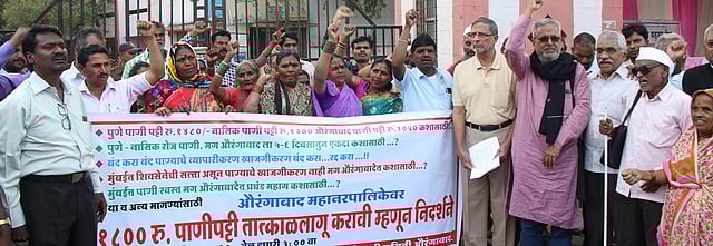 समांतर पाणीपुरवठा योजनेसाठी महापालिकेने पाणीपट्टीत वाढ करण्याचा निर्णय घेतला होता. मात्र, नागरिकांच्या विरोधामुळे ही योजना गुंडाळण्याचा निर्णय घेण्यात आला; मात्र पाणीपट्टीत वर्षानुवर्षे वाढ होतच गेली. दुसरीकडे शहरात पाचव्या दिवशी म्हणजेच महिन्याला सहा दिवसच पाणी दिले जाते. त्यामुळे पाणीपट्टीमध्ये करण्यात आलेली वाढ मागे घेण्याची मागणी काही वर्षांपासून सुरू आहे. त्यानुसार महापौरांनी नुकत्याच झालेल्या सर्वसाधारण सभेत पाणीपट्टी 1800 रुपये एवढी करण्याचा निर्णय घेतला होता. याची प्रशासनातर्फे अंमलबजावणी केली जाईल की नाही, याविषयी शंका उपस्थित केली जात आहे. आयुक्त आस्तिककुमार पांडेय यांनी उत्पन्न वाढल्याशिवाय पाणीपट्टीत कपात करणे शक्य नाही, अशी भूमिका घेतली आहे. या पार्श्वभूमीवर बुधवारी औरंगाबाद सामाजिक मंच व पाणीपुरवठाविषयक नागरी कृती समितीतर्फे महापालिका मुख्यालयासमोर प्रा. विजय दिवाण, सुभाष लोमटे, ऍड. मनोहर टाकसाळ, डॉ. शेख इक्बाल मिन्ने, मधुकर खिल्लारे, अण्णा खंदारे यांच्या नेतृत्वाखाली आंदोलन करण्यात आले. पाणीपट्टीत कपात झालीच पाहिजे, अशी मागणी करीत महापालिका व महापौरांच्या विरोधात यावेळी जोरदार घोषणाबाजी करण्यात आली. दरम्यान, शिष्टमंडळाने महापौरांची भेट घेऊन निवेदन दिले. यात औरंगाबादचे पाणी चौपट महाग असल्याचा आरोप करण्यात आला आहे.