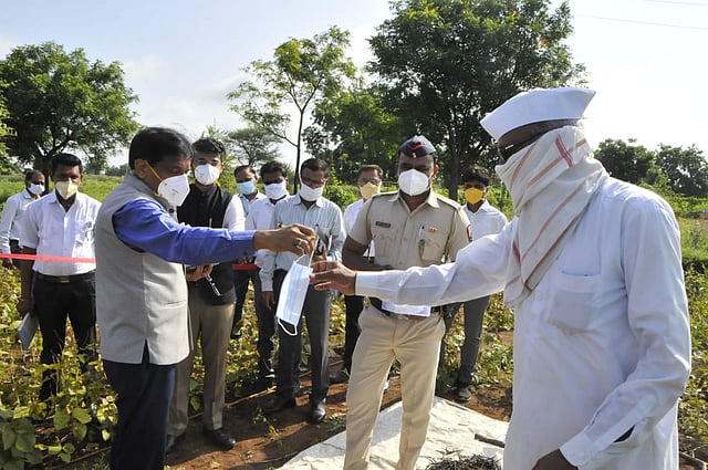 जिल्हाधिकारी सुनील चव्हाण यांनी गंगापूर तालुक्यातील दहेगाव बंगला येथील शेतकरी आप्पासाहेब घुसाळे यांच्या शेतात पीक कापणी प्रयोगाचे प्रत्यक्ष पर्यवेक्षण करत मार्गदर्शन केले. यावेळी शेडनेटची पाहणी केली. प्रधानमंत्री कौशल्य विकास कार्यक्रमांतर्गत शेतकरी ते ग्राहक या संकल्पनेवर आधारित विपणन व्यवस्था उभी करून यामध्ये युवक व बचत गटांची मदत घेणार आहे.