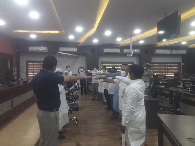 अत्यावश्यक कामासाठी बाहेर पडायचे असल्यास मास्क लावेन, दिवसातून सहा-सातवेळा साबणाने स्वच्छ हात धुवेन, समाजाला कोरोनामुक्त करण्यासाठी मी माझ्या कुटुंबातील सदस्यांसह शपथ घेत आहे. एकमेकांपासून सहा फूट दूर अंतर राखून जिल्हा कोरोनामुक्त करीन,’ अशी शपथ वाचून दाखविली. खासदार इम्तियाज जलील, आमदार, प्रदीप जैस्वाल, अंबादास दानवे, अतुल सावे, संजय शिरसाट, सतीश चव्हाण, जिल्हाधिकारी उदय चौधरी, महापालिका प्रशासक आस्तिककुमार पांडेय यांची उपस्थिती होती.