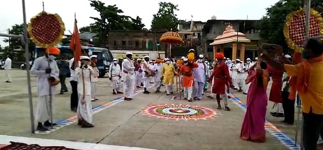 औरंगाबाद ः कोरोनाच्या महामारीमुळे आषाढी यात्रा रद्द करण्यात आली असली तरी पंढरीच्या वारीची मोठी परंपरा असलेल्या पैठण येथील शांतिब्रम्ह संत एकनाथ महाराजांच्या यांच्या पालखी दिंडी सोहळ्याचे औपचारिक प्रस्थान शुक्रवारी (ता.१२) झाले. दरम्यान, शासन निर्देश येईपर्यंत दिंडी प्रस्थान पालखीचा पैठण येथे नाथांच्या समाधी मंदिरात मुक्काम राहणार आहे. त्यानंतर शासनाच्या सुचनेनुसार एक जुलै रोजी पंढरपूर येथे आषाढी एकादशीला नाथांच्या पादुकांचा सोहळा मोजक्याच वारकऱ्यांच्या उपस्थितीत दाखल होणार आहे. यात्रा होणार नसल्यामुळे वारकरी व भाविकांच्या मनोमनी त्या विठ्ठलाचे रुप पाहण्याची उर्मी प्रस्थान प्रसंगी दाटुन आली होती.