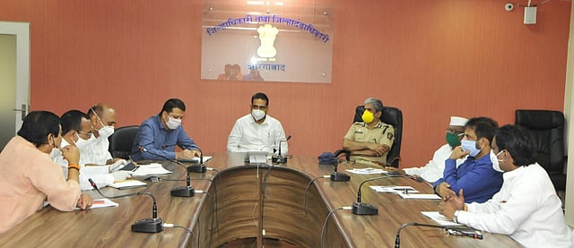 औरंगाबादः गणेशोत्सव काळात नागरिकांनी दक्षता बाळगणे गरजेचे आहे. गणेश मूर्ती काही दिवस अगोदरच नागरिकांनी खरेदी करावी. नागरिकांनी प्रशासनाच्या उपाययोजनांना सहकार्य करावे, असे आवाहन जिल्हाधिकारी उदय चौधरी यांनी केले. बदली आदेश निघण्याअगोदर त्यांनी बैठक घेतली. जिल्हाधिकारी कार्यालयात झालेल्या बैठकीत खासदार इम्तियाज जलिल, खासदार डॉ. भागवत कराड, आमदार अंबादास दानवे, आमदार हरिभाऊ बागडे, आमदार अतुल सावे, आमदार प्रदीप जैस्वाल, महापालिका प्रशासक आस्तिककुमार पांडेय, पोलिस आयुक्त चिरंजीव प्रसाद, अप्पर जिल्हाधिकारी अनंत गव्हाणे यांची उपस्थिती होती.