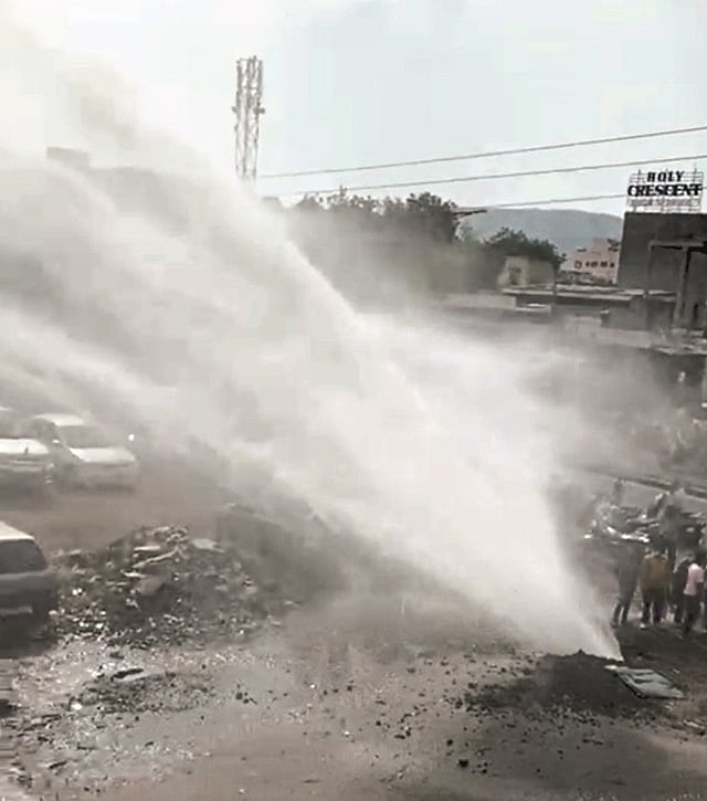 चिकलठाणा एमआयडीसी भागाला पाणीपुरवठा करणारी पाइपलाइन बीड बायपास परिसरातून जाते. कमलनयन बजाज हॉस्पिटलजवळ या पाइपलाइनला काही दिवसांपासून गळती वाढली होती. मंगळवारी सकाळी साडेआठच्या सुमारास अचानक पाइपलाइनमधून पाणी गळती वाढली व पाण्याचे फवारे सुमारे तीस फुटांपर्यंत उडाले. त्यामुळे परिसरातील नागरिक त्रस्त झाले. शाहीद खान यांच्या घरासह इतरांच्या घरांमध्ये पाणीच पाणी झाले.