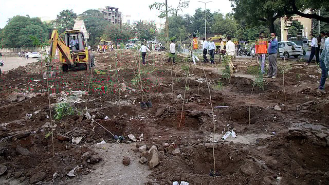 आयुक्तांच्या आदेशानुसार या ठिकाणी तत्काळ 500 रोपे उपलब्ध झाली. दोन वाजेनंतर दोन जेसीबीच्या साह्याने खड्डे खोदण्यात आले. येथे दहा प्रजातींची वृक्षलागवड केली. यात पिवळा गुलमोहर, बकुळ, महागुणी, सप्तपर्णी आदींचा समावेश आहे. या ठिकाणी झाडांना धोका निर्माण होऊ नये, यासाठी संरक्षण जाळी बसवण्याचेही काम रातोरात करून घेण्याचे आदेश आयुक्तांनी दिले आहेत. त्यानुसार संरक्षण जाळीही बसवण्याचे काम केले जात आहे.