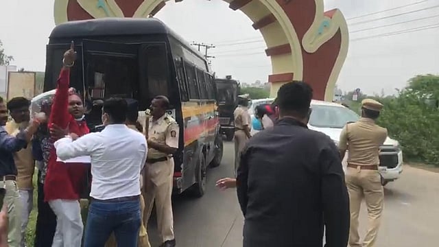 यावेळी उच्च व तंत्रशिक्षण मंत्री उदय सामंत यांचा ताफा येताच विद्यार्थी संघटनांनी ताफा अडविण्याचा प्रयत्न करणारच तत्पूर्वीच पोलिसांनी त्यांना ताब्यात घेतले.