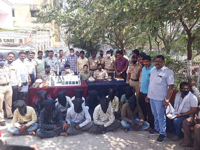 हिंगोली : हिंगोलीतील सुरानानगरातील एसआरपीएफ जवानाचे घरी सशस्त्र दोडयाचा ४८ तासात छडा लावत नदीनाल्यातून पाच कि.मी. पाठलाग करुन ११ अट्टल दरोडेखोर अटक करुन १० लाख ४९ हजार रुपया मुद्देमाल जप्त करण्यात आला असून ही कारवाई स्थानिक गुन्हे शाखा व हिंगोली ग्रामीण पोलिस ठाणे यांनी संयुक्तपणे केली असल्याची माहिती पोलिस प्रशासनातर्फे शुक्रवारी (ता. १२) पत्रकार परिषदेत देण्यात आला.