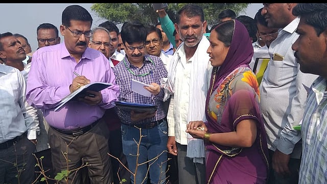जवळपास शंभरहून अधिक शेतकरी रस्त्यावर थांबले होते. हे दृश्य पाहून पथकाला उफरती झाली. त्यांनी लागलीच गाड्या वळवून पडेगावत दाखल झाले. येथील पीक परिस्थीतीच पाहणी करून त्यांनी शेतक-यांची विचारपूस केली. दरम्यान, बीड जिल्ह्यातून पथक सकाळी साडेदहा वाजता पथकाने गणेशपूर (ता.सेलू ) येथील सर्वे नं. २० मधील महिला शेतकरी त्रिवेणी रामचंद्र गिते यांच्या कापूस पिकाची प्रत्यक्ष पाहणी केली. तदनंतर पथक प्रमुख निती आयोगाचे संयुक्त सल्लागार मानस चौधरी, पाणी व स्वच्छता मंत्रालयाचे वरिष्ठ सल्लागार एस.सी. शर्मा, ग्रामीण विकास विभागाचे एस.एन. मेहरा यांनी शेतक-यांशी संवाद साधला. त्यांनी दुष्काळ परिस्थितीची विचारणा केली.