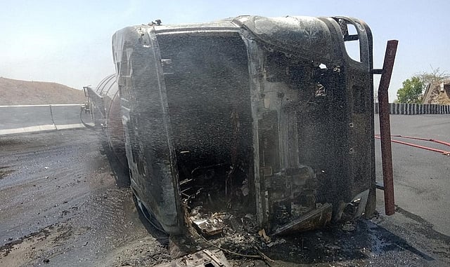 नागरिकांनी तत्काळ घटनास्थळी धाव घेतली व पोलिसांना या घटनेची माहिती दिली. त्यानंतर पोलिस व अग्निशमन दलाने धाव घेतली; मात्र आगीचा भडका अचानक उडाल्यामुळे एकाचा गाडीतच मृत्यू झाला, तर एकजण गंभीर जखमी झाला. विशाखापट्टनमकडून एक टॅंकर (जीजे- १६, एव्ही- ६१७७) गुजरात राज्यात जात होता. टॅंकर मांजरसुंबा घाटात येताच अचानक चालकाचे नियंत्रण सुटल्यामुळे ट्रक पलटी झाला. रसायन असल्यामुळे टँकरने पेट घेतला. यावेळी मोठी आग लागली होती.