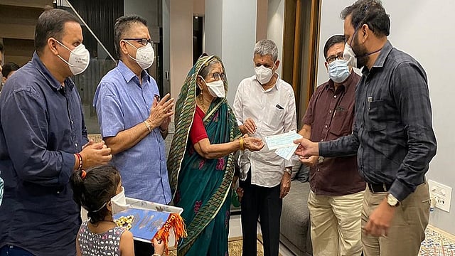 कोरोनाच्या रुपाने देशावर मोठे संकट उभे राहीले आहे. अशा वेळी शासन आणि प्रशासनासोबत उभे राहून या महामारीचा सामना करणेे आवश्यक आहे. देशातील उद्योगधंदे ठप्प असल्याने शासन पातळीवर निधीची कमतरता भासू नये यासाठी देशाचे पंतप्रधान व राज्याचे मुख्यमंत्री यांनी केलेल्या आवाहनाला प्रतिसाद देताना काकाणी परिवाराने मंगळवारी सायंकाळी प्रत्येकी अडीच लाख रुपयांप्रमाणे एकूण पाच लाख रुपयांचा धनादेश जिल्हाधिकारी डॉ. विपीन यांच्याकडे सोपविला आहे. या वेळी उपविभागीय अधिकारी राजेंद्र शेळके, तहसीलदार दत्तात्रय शिंदे, डॉ. कमलकिशोर काकाणी, ओमप्रकाश काकाणी, पुरुषोत्तम काकाणी, उद्योजक सुबोध काकाणी यांच्यासह काकाणी परिवार उपस्थित होता.