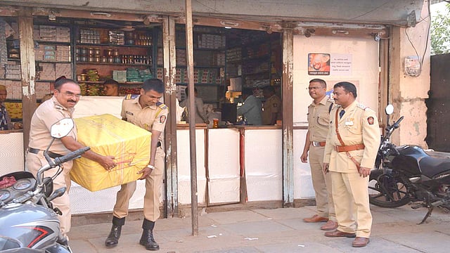 हस्तगत करण्यात आलेला सिगारेटचा माल नेतांना पोलिस कर्मचारी.