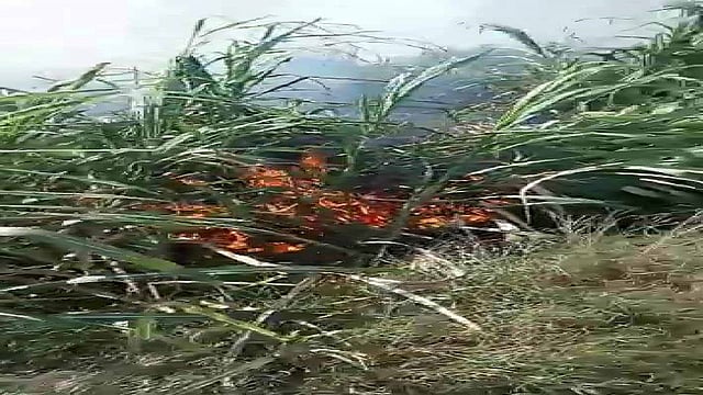 कुंभार पिंपळगाव (जि.जालना) : येथील शेतकरी जगन बन्सीधर कंटुले यांच्या गट क्रमांक ४२२ शेतातुन जाणाऱ्या राजाटाकळी-अरगडे गव्हाण मुख्य वीज वाहिनीच्या लोंबकळलेल्या तारांचे घर्षण होऊन शॉर्टसर्किट झाल्याने चार एकर क्षेत्रातील ऊसाने पेट घेतला. यात ऊस जळुन खाक झाला. ही घटना शुक्रवारी (ता.२७) घडली. यामुळे शेतकऱ्याचे मोठे नुकसान झाले आहे. कंटुले यांच्या शेतातुन राजाटाकळी-अरगडे गव्हाण मुख्य वीज वाहिनी गेलेली आहे.