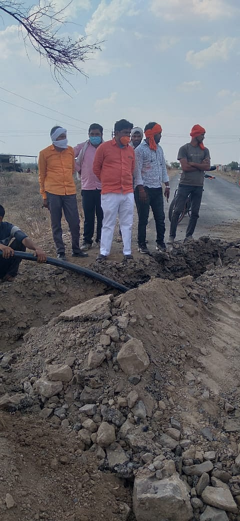हिंगोली तालुक्यातील खांबाळा येथे मागच्या काही दिवसांपासून पाणी पातळी खोलवर गेल्याने पाणी टंचाई जाणवत आहे. त्यामुळे गावकऱ्यांची भटकंती होत आहे. यावर उपाययोजना करण्यासाठी उपसरपंच दतराव पवार, सदस्य गजानन पवार, मारोतराव काळे, केशव शाकट यांनी पुढाकार घेत दतराव पवार यांच्या शेतातून एक किलोमीटर जलवाहिनी टाकली. यासाठी लागलेला खर्च उपसरपंच व चार ग्रामपंचायत सदस्यांनी उचलला व गावात पाणी पुरवठा करणाऱ्या साठवण टाकीत पाणी उपलब्ध केले आहे.