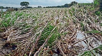 बीड : अतिवृष्टीने चार लाख हेक्टरांवरील पिकांचा सुपडासाफ झाला आहे, तर सात लोकांचे बळी गेले असून लहान-मोठी १९५ जनावरे दगावली आहेत. सोळा वर्षांनंतर प्रथमच पावसाचा प्रकोप जिल्ह्याने पाहिला आहे. पावसाने चार लाख हेक्टर क्षेत्रांवरील कपाशी, सोयाबीन, ऊस व इतर खरीप पिके सुपडासाफ केली आहेत. विशेष म्हणजे नदी, ओढ्याकाठची हजारो हेक्टर जमीनही उखडून गेली आहे. फळबागा जागीच झोपल्या आहेत.